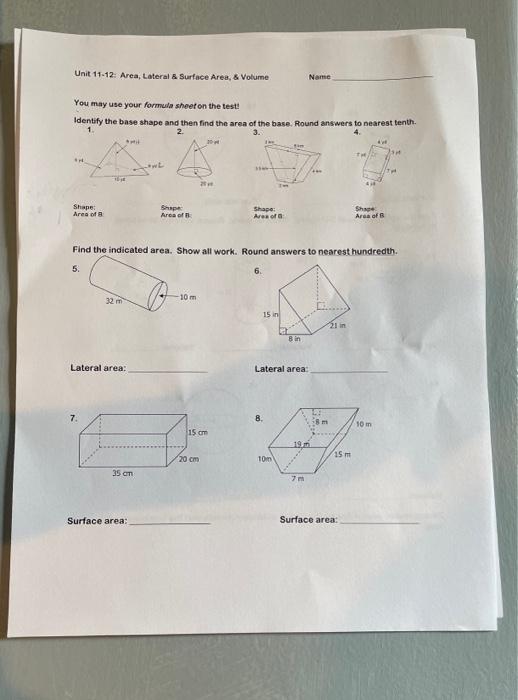 Unit 11 Volume And Surface Area Test Answers - Unit 11 Volume Surface Area Homework 2 Area Of Sectors : The total surface area of a cylinder is 220 sq cm with height 6.5 cm.. This is the aptitude questions & answers section on & volume and surface area& with explanation for various interview, competitive examination and entrance test. The area of a rhombus with side 50 dm and one of the diagonals 80 dm is view all answers. Calculate the surface area of the triangular prism. Math pre test answer key and review guide. Complete the test and get an award.